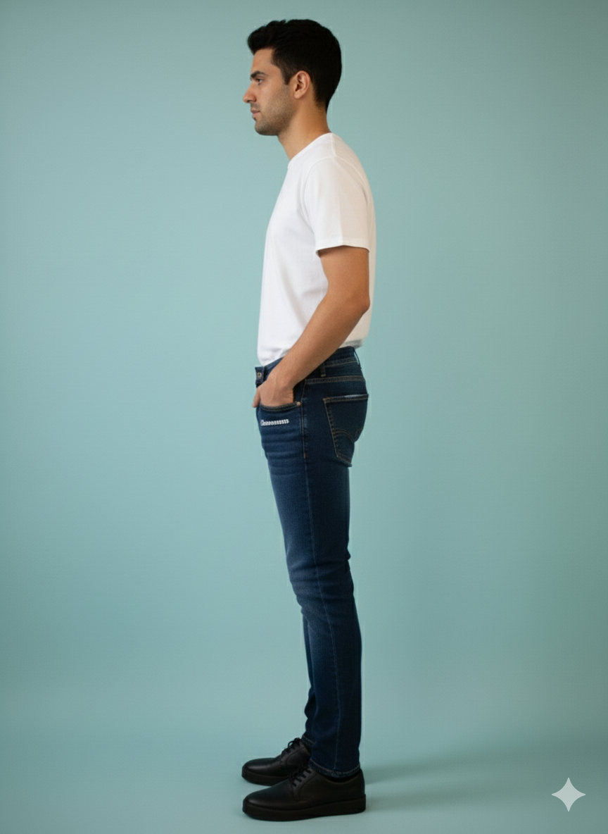- Tailored Fit: Our jeans are meticulously cut to provide a clean, flattering silhouette. The fit is designed to be slim but not tight, offering a modern aesthetic while providing ample room for movement.