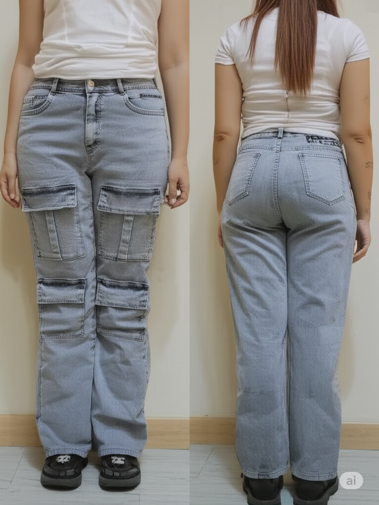 Unleash your inner fashionista with these unique and highly functional women’s light wash multi-pocket cargo jeans. Perfect for those who love a Y2K aesthetic or a bold streetwear look, these jeans are designed to make a statement. They feature an abundance of stacked cargo pockets down the legs, providing both practical storage and an distinctive, edgy style.